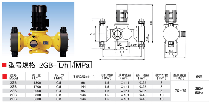 產品名稱:2GB型機械隔膜式計量泵